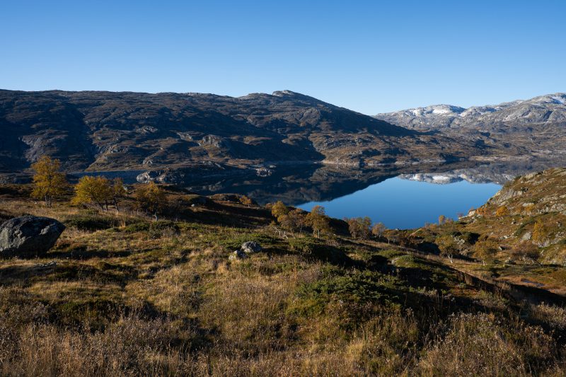 Der 26. September brach an und damit unser letzter ganzer Tag in Norwegen. Doch heute sollte es noch einmal richtig schön werden. Das Haukelifjell ist eine wunderschöne Landschaft, und der alte Weg so richtig schön. Gleich am Morgen trafen wir auf drei gechillte Schneehühner. Sie waren teils schon weiß für den Winter, hatten aber immer noch viel von der Tarnfarbe des Sommers und Herbstes an sich.