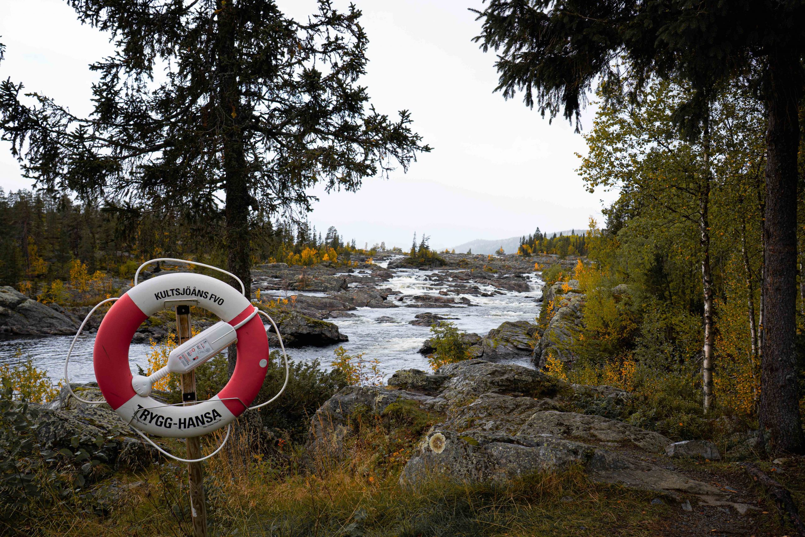 Wir packten zusammen und starteten in Richtung Vildmarksvägen. Einsteigen wollten wir nach dem Trappstegsforsen (Wasserfall), und auf dem Weg dorthin begleitete uns bereits sein Wasser.