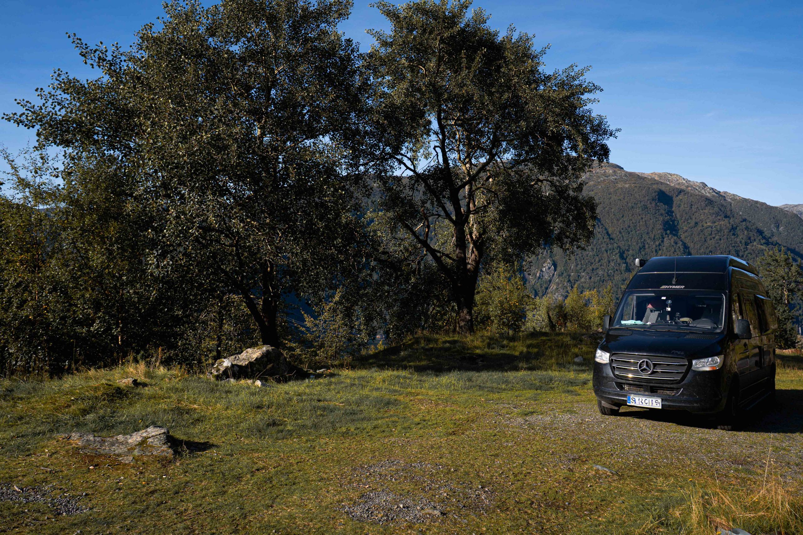 Unseren Schlafplatz fanden wir dann bei Hjelle direkt am Fjord.